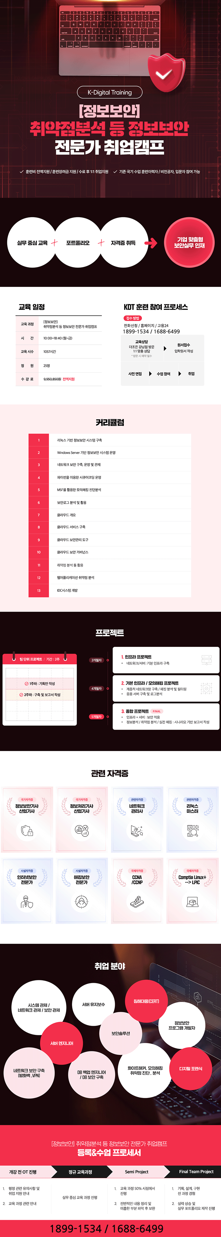 실제훈련비 :8,243,200원 정부지원금 :8,243,200원 모집인원(정원) :25명 ----------------------------------------------------------------------- 정보 시스템 운영 및 네트워크 보안